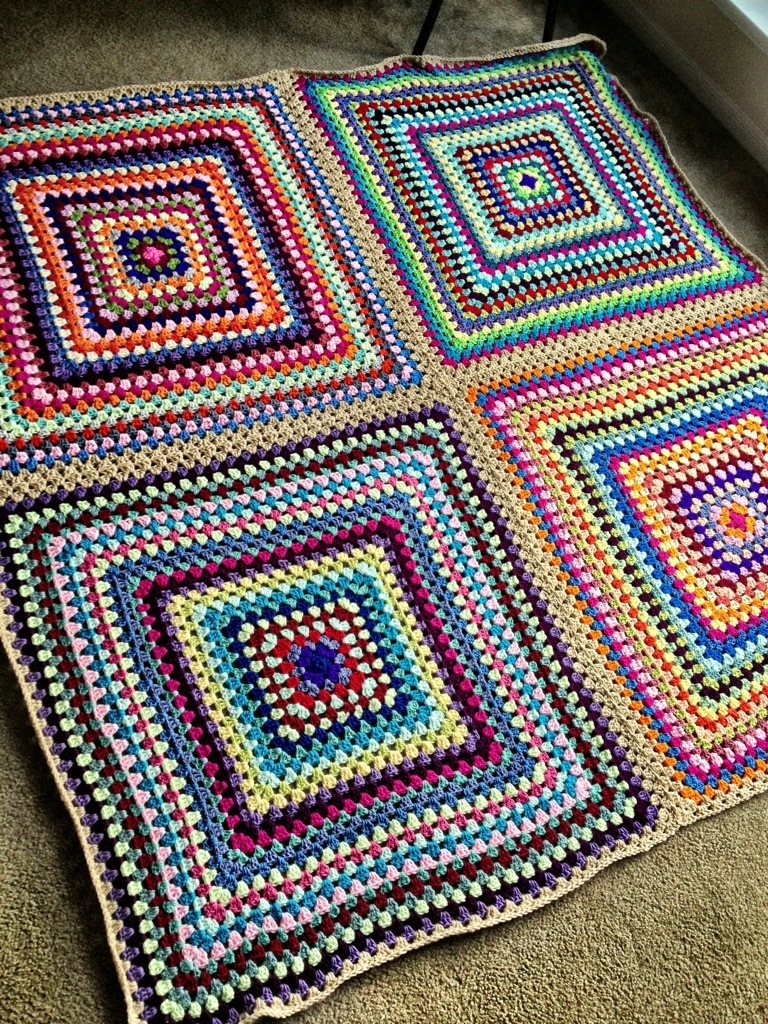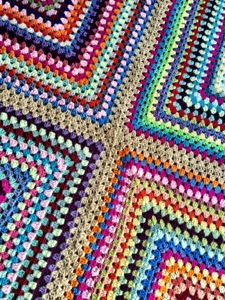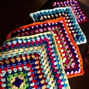 My growing granny squares – I use my own techniques to create the most professional looking granny square that I can. I use the color wheel as a guide for placement.