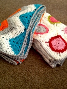 My sixth Gumball blanket – sent to a mother of twins in Oregon – see her son’s chevron blanket below 😉