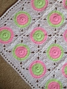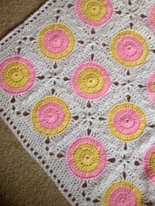 First blanket – pink and yellow – all done!