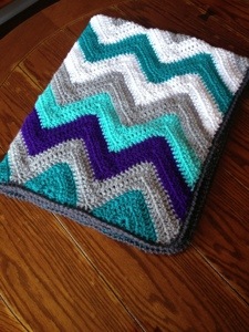 1. LOVE this! I am in the middle of doing a baby blue and baby yellow one myself! I really never expected the chevron stitch to be so easy! I LOVE it! Your colors are super great together! Happy Crocheting! 🙂