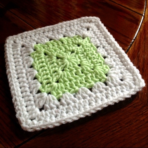 The other chain in the sc, chain2 is the corner chain. I’ve gotten on a kick of omitting all the ch1 between the 3dc groups on grannies. So I only chain 1 in the corners. It really turns out a neat little square.
