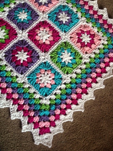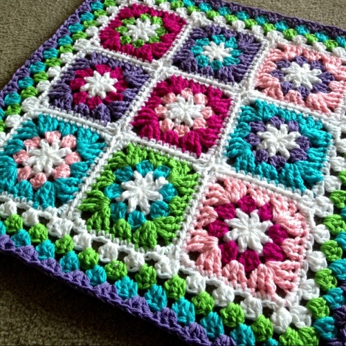 I kept the granny style border by working 3DC groups into every third stitch across the final SC round of the nine granny square center.