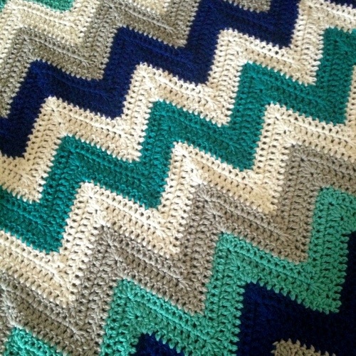 I am hoping this photo really portrays the texture of the 3-row color design. Can I say again how much I love making this blanket? I love it! Hopefully there are droves of chilly, chevron-loving people out there – lol!