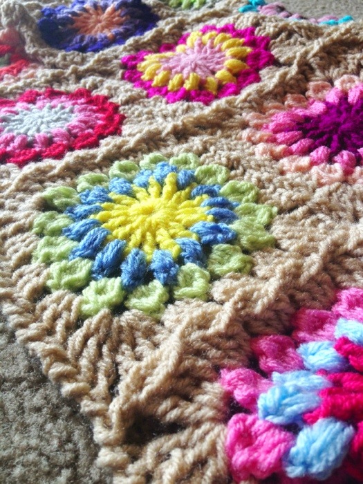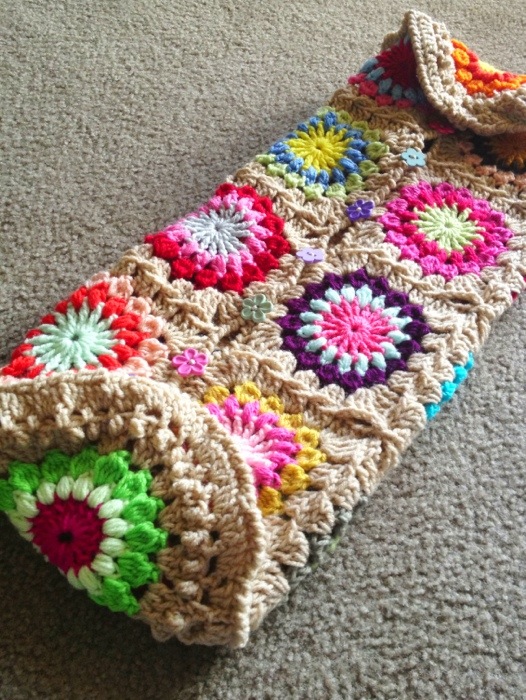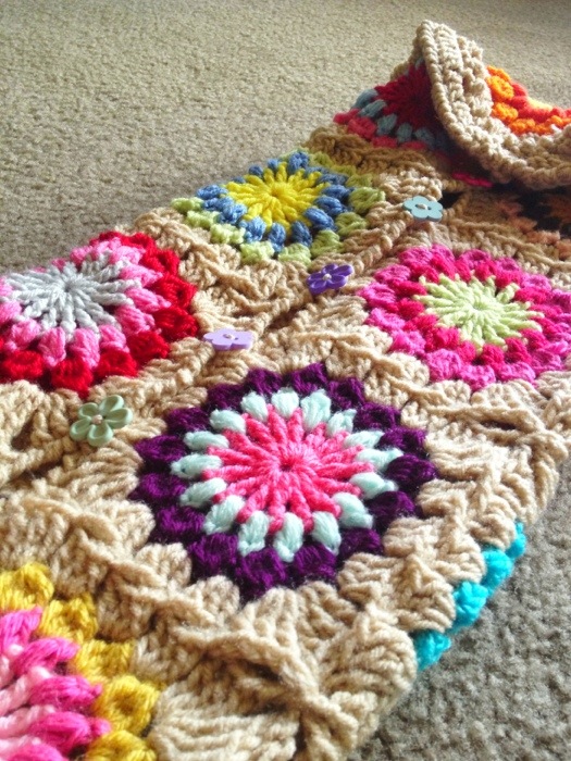 It doesn’t matter how long you want your cushion cover to be – as long as it fits your cushion, of course! I made my cushion body a square (4×4=16 grannies) because it worked out that way.