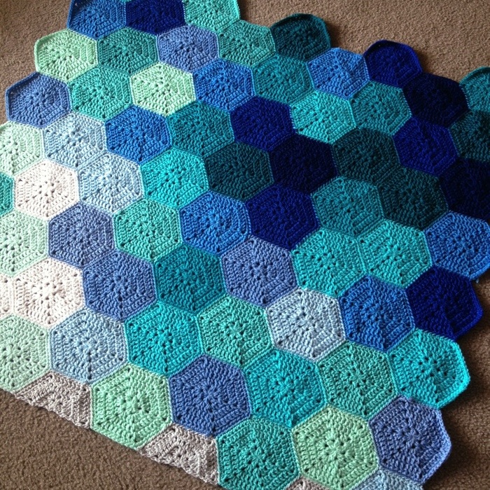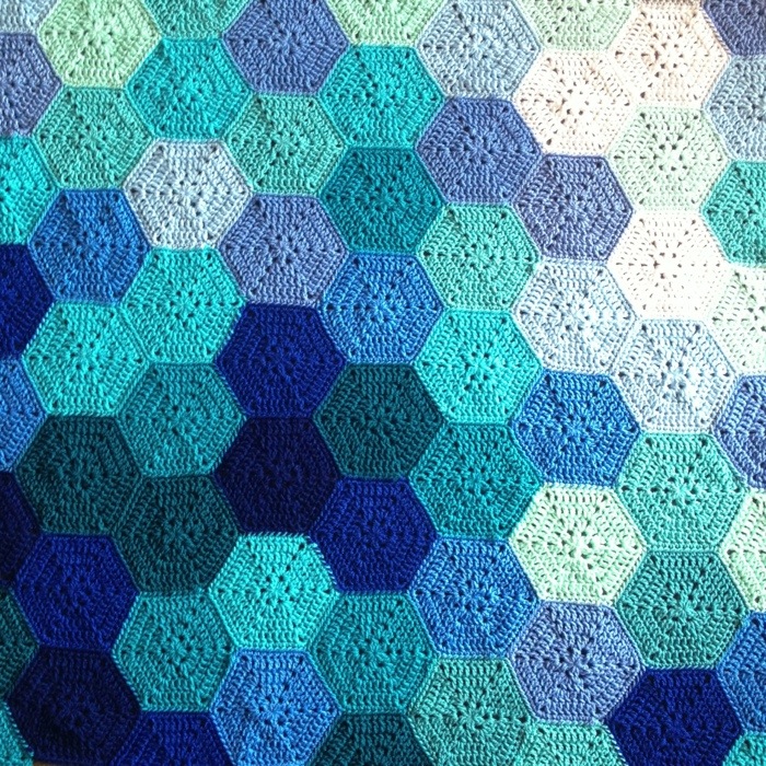I’ve made this blanket in the aqua and blue color-way two times before (1, 2) and I don’t think I’ll tire of it.