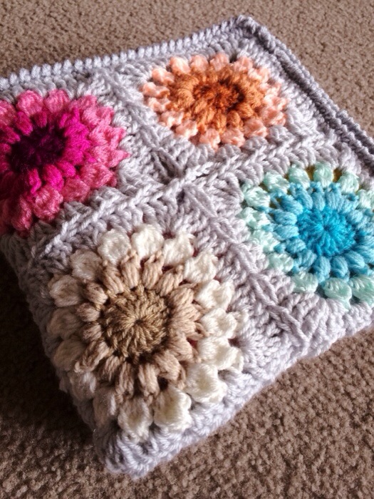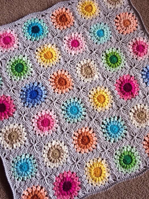 One reason I love this design is that I can work up these little flower motifs in one morning! They’re so quick, and if I make 36 motifs, it’s enough for a 36×36″ blanket.