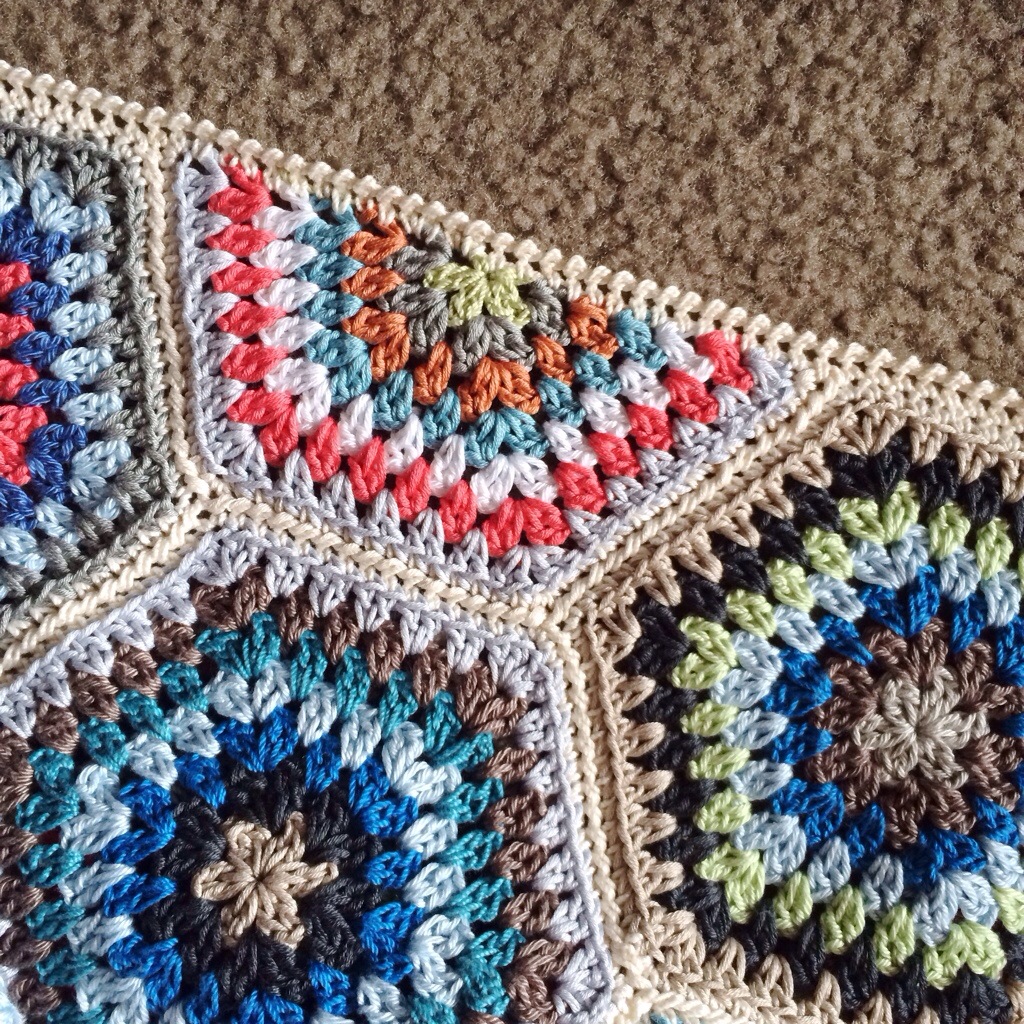 For my sample blanket, I used light weight stash mercerized cotton yarn in a variety of colors and a G (4.25mm) hook. I crochet tighter than the average bird. You could use any weight yarn with your favorite hook. My finished blanket in this pattern with this yarn and hook is about 32×42”.