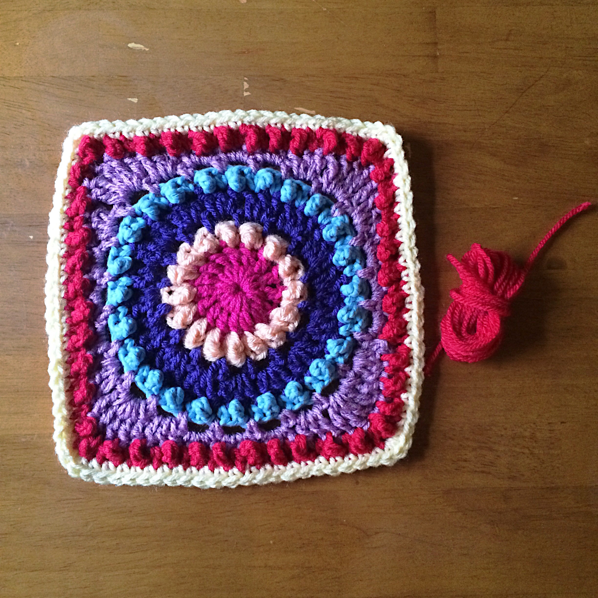 - Materials: Mostly Hobby Lobby “I love this yarn” – The white background is Lion Brand “Pound of Love, and I have mixed in some New Fashion DK as well – Size K 6.5mm hook