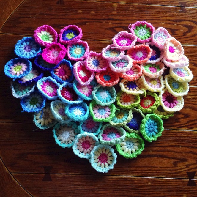 - Materials: Stash-busted through various craft store yarn with Lion Brand Pound of Love background (I buy at Walmart.com and Knitting-Warehouse.com) – Size K (6.5mm) hook