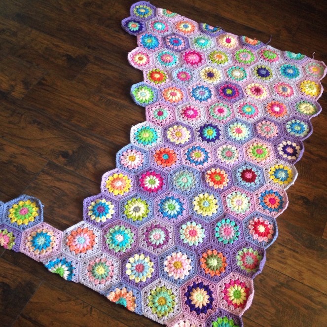 - Pattern: Cottage Quilt blanket with striped corner omitted