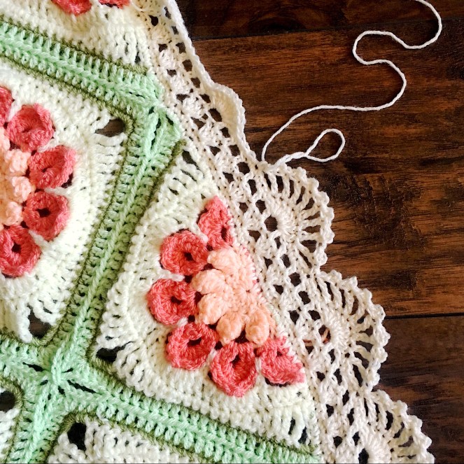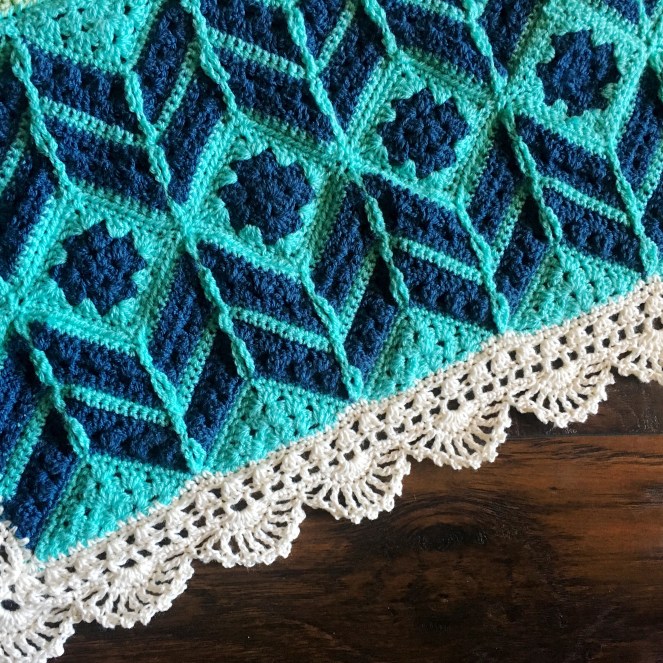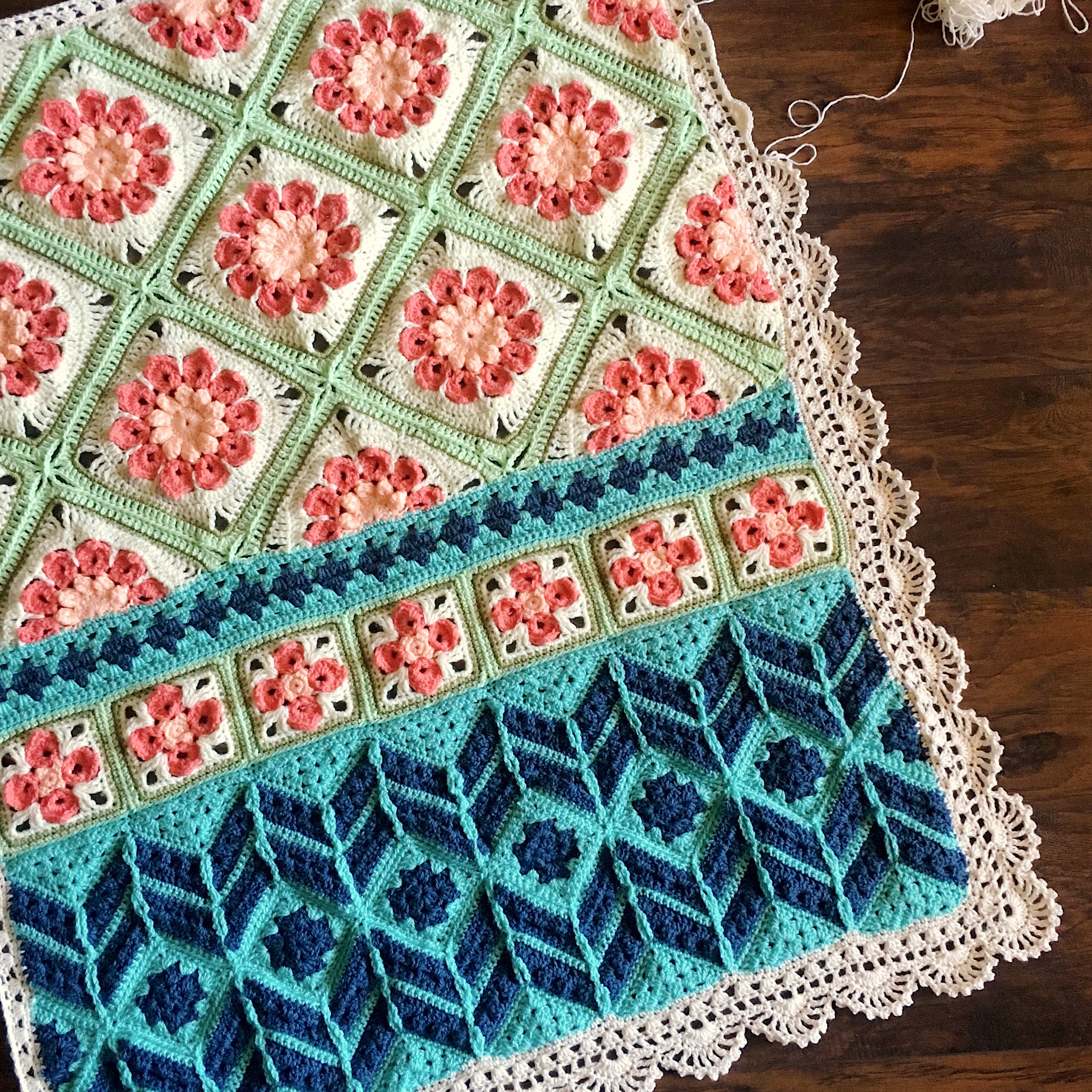 Yarn is Stylecraft Special DK*, and yarn amounts/colors are included in intro of pattern. Pattern includes lace border!