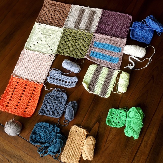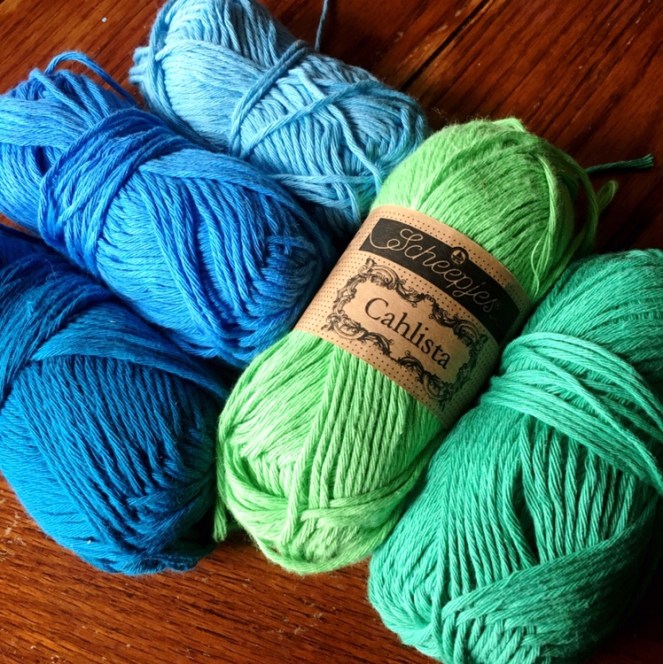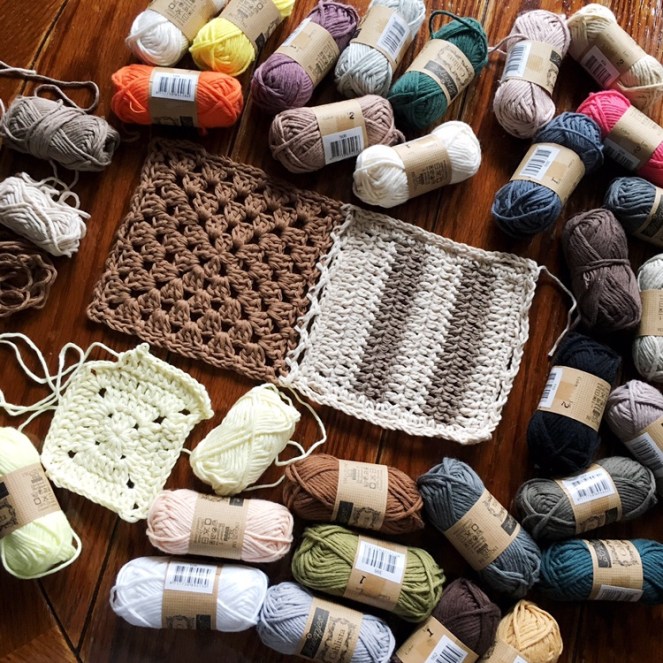 Here’s how it began. Just a ton of little Scheepjes Cahlista cutie pies from the Colour Pack (15g balls) – but I also recommend using remnants!