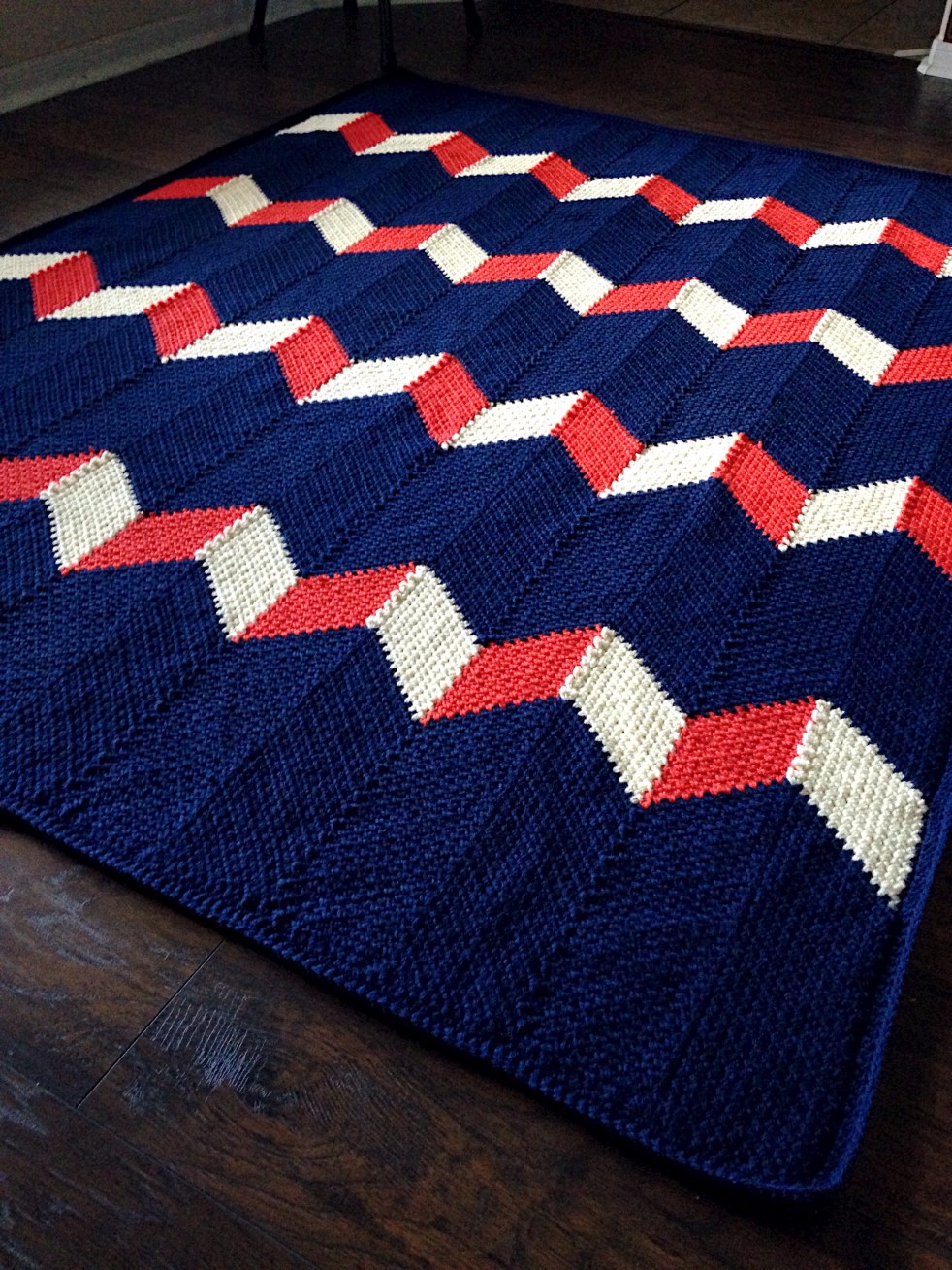 Beach Hut Blanket To see more about ordering a custom piece in any color palette, visit this listing in my Etsy Shop.Pattern now available on Etsy Craftsy and Ravelry! Beautiful 36x36inch (resizing instruction included) No-Sew blanket! Very sophisticated, smart, and cozy.Inspired by "Colorful Chevrons" fabric quilt by Christa Watson - absolutely lovely work. I recommend looking through… Continue reading Beach Hut Blanket No. 1