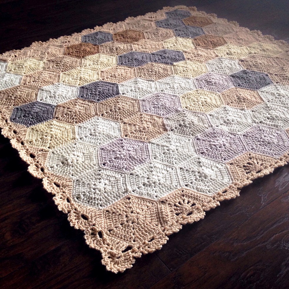 Design Profile Pattern: Geometric Lace Materials: Hobby Lobby “I love this yarn” and Red Heart Super Saver (I buy from knitting-warehouse.com for a softer product!) Size: 48x48in Construction: Hexagons joined as you go, squared off with a neutral lace border. Similar Pieces: See the main page Design Inspiration: A beautiful neutral palette, highlighted with crisp… Continue reading Geometric Lace No. 44
