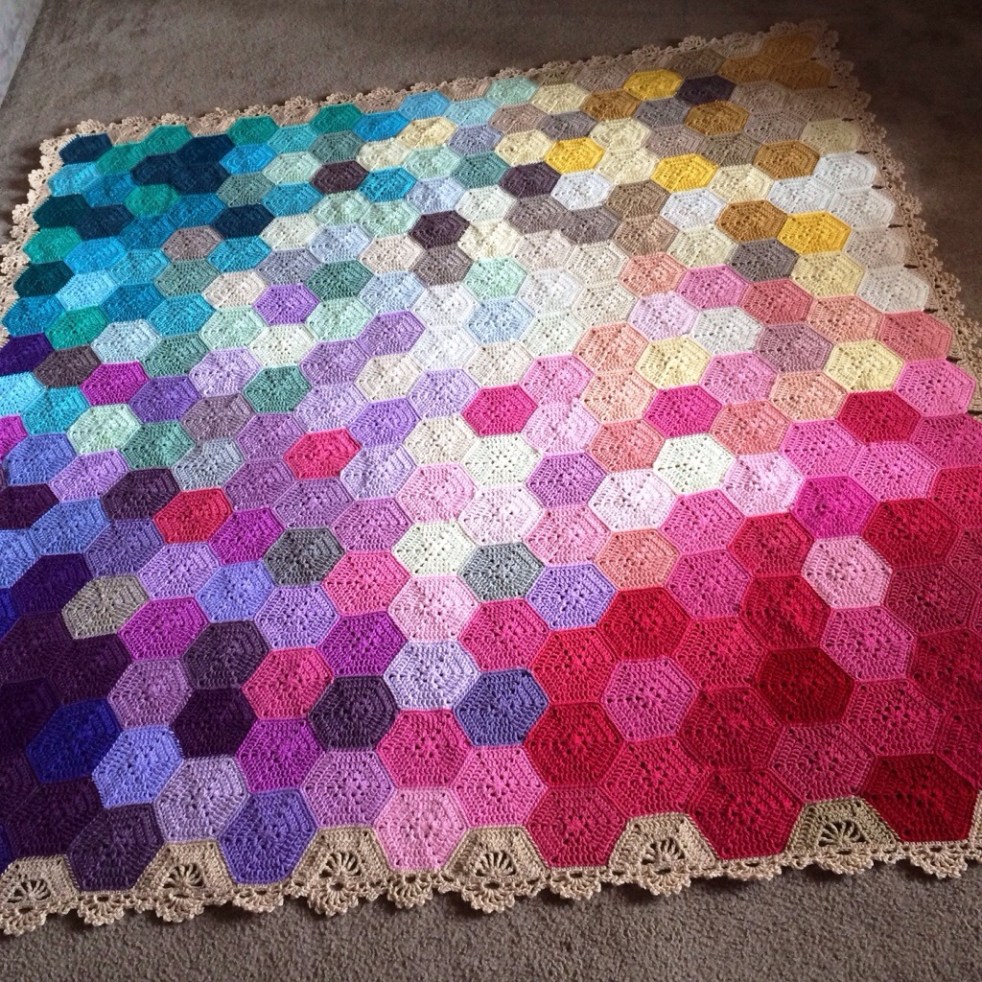 Mat to put on the ground and watch the parades at Disney! Many good things to say about this project when I have time to update this post. 🙂 More info soon! Free pattern here! So many gorgeous blankets have been made using the Geometric Lace pattern with a single color joining the completed hexagons,… Continue reading Geometric Lace No. 37