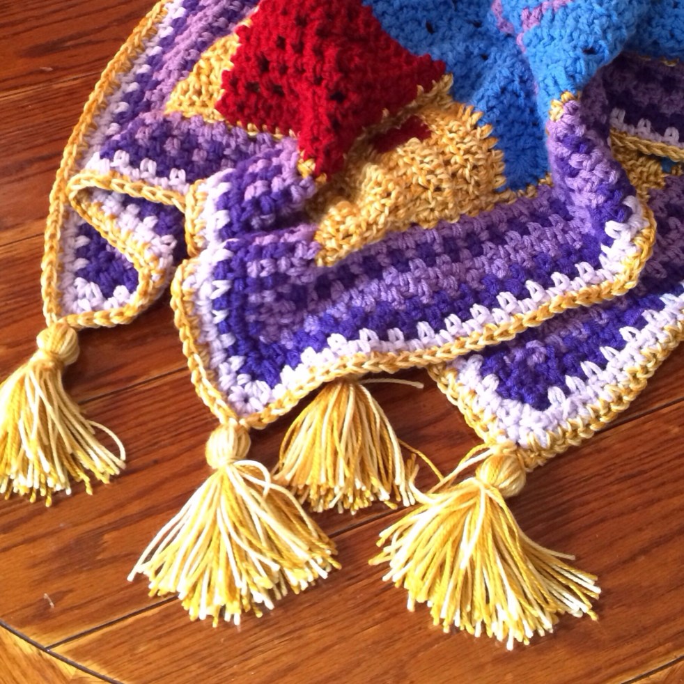 Magic Carpet throw made for a gentleman gymnast in an Aladdin-themed show! To make my pattern library more organized and browse-friendly, this pattern has moved to my crafter site! Click here for pattern