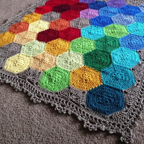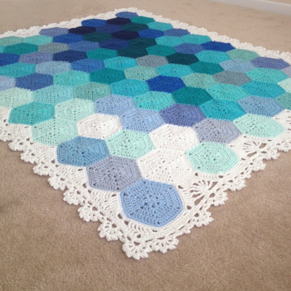 Geometric Lace - The first version for a wonderful lady in the Land of Oz! 🙂 Check out the pattern for sale on Ravelry and Etsy, or look into buying this blanket as a custom, handmade item. Tip: Joining When I embarked on the Geometric Lace blanket journey, I experienced a false start! My hexies had very choppy… Continue reading Geometric Lace 1