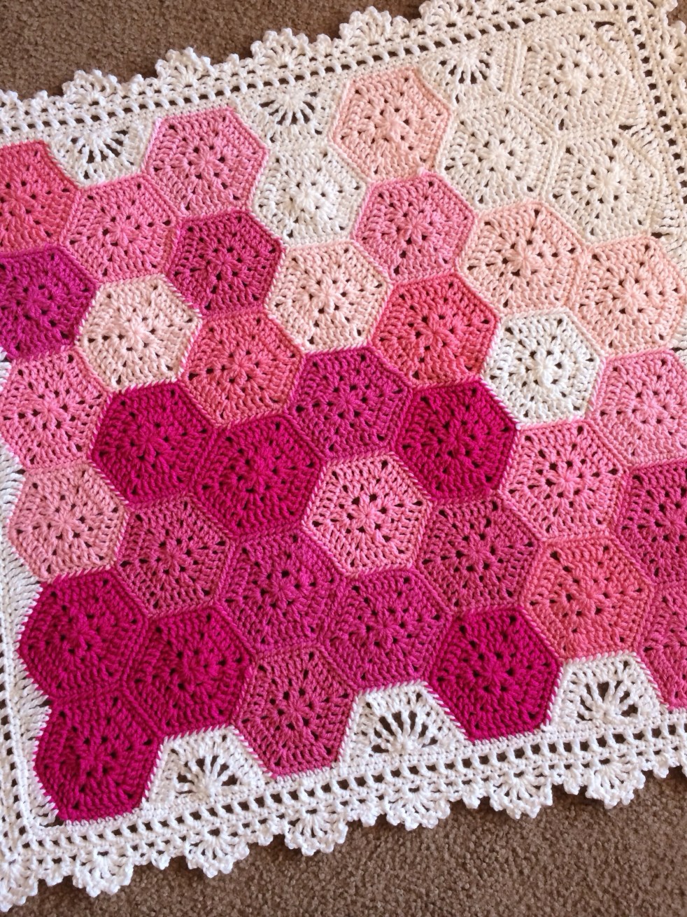 Design Profile Location: Mexico Pattern: Geometric Lace Materials: Hobby Lobby “I love this yarn” and Red Heart Super Saver (I buy from knitting-warehouse.com for a softer product!) Construction: Hexagons joined as you go, squared off with a crisp white lace border that balances the pinks! Similar Pieces: See the main page Design Inspiration: Custom color… Continue reading Geometric Lace No. 29
